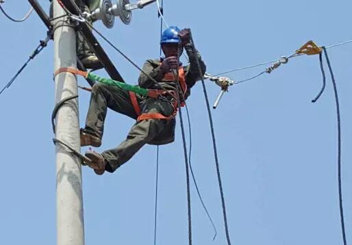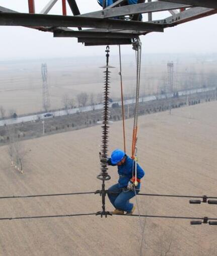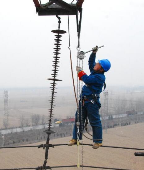 電力設施檢修電力工人攜帶鋁合金手扳葫蘆檢修作業(yè)...